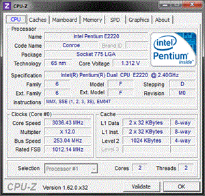 | Процессор (ядро) | Intel Pentium Dual-Core (Conroe-1M) |