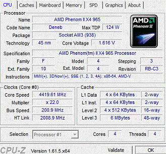 Результат разгона AMD Phenom II X4 (Deneb)