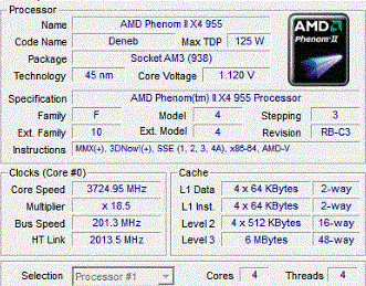 | Процессор (ядро) | AMD Phenom II X4 (Deneb) |