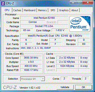 | Напряжение питания (Vcore) | 1.632 |