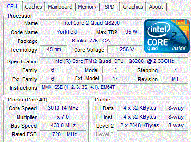 | Процессор (ядро) | Intel Core 2 Quad (Yorkfield) |