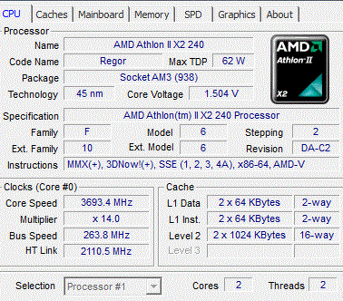 | Процессор (ядро) | AMD Athlon II X2 (Regor) |