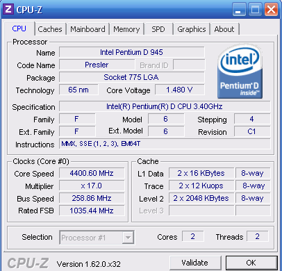 | Процессор (ядро) | Intel Pentium D (Presler) |
