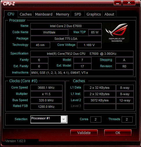 Результат разгона Intel Core 2 Duo (Wolfdale)