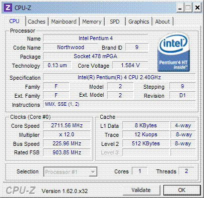 | Процессор (ядро) | Intel Pentium 4 (Northwood) |