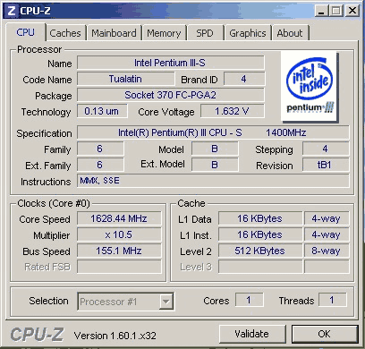 Результат разгона Intel Pentium III-S (Tualatin-512)