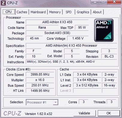 | Процессор (ядро) | AMD Athlon II X3 (Rana) |