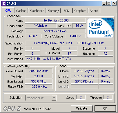 | Процессор (ядро) | Intel Pentium Dual-Core (Wolfdale-2M) |