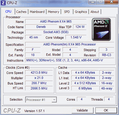 | Процессор (ядро) | AMD Phenom II X4 (Deneb) |