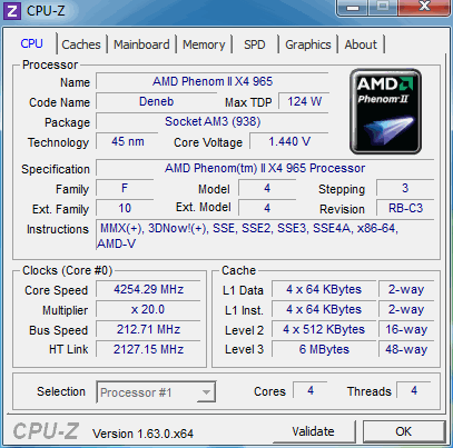 | Процессор (ядро) | AMD Phenom II X4 (Deneb) |