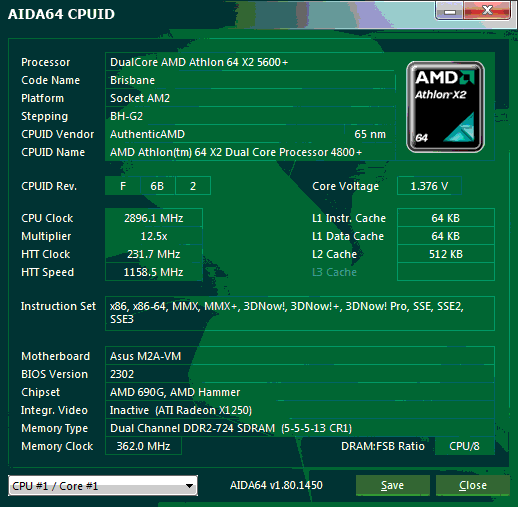 | Процессор (ядро) | AMD Athlon 64 X2 (Brisbane) |