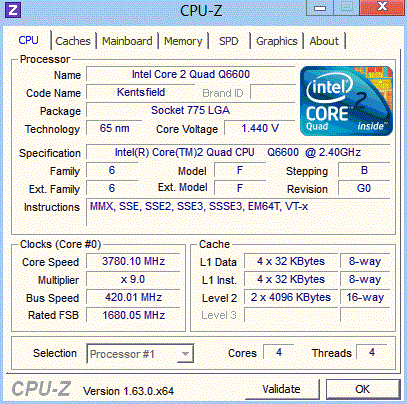 Результат разгона Intel Core 2 Quad (Kentsfield)