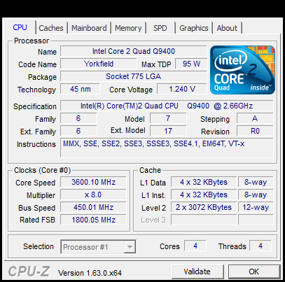 Результат разгона Intel Core 2 Quad (Yorkfield)