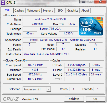 Результат разгона Intel Core 2 Quad (Yorkfield)
