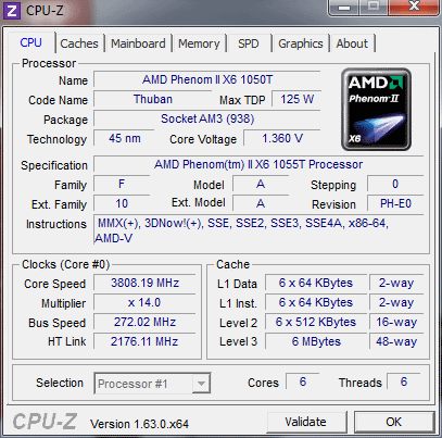 | Процессор (ядро) | AMD Phenom II X6 (Thuban) |