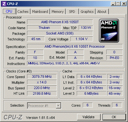 | Процессор (ядро) | AMD Phenom II X6 (Thuban) |