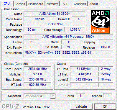 | Процессор (ядро) | AMD Athlon 64 (Venice) |
