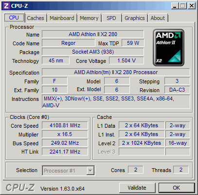 Результат разгона AMD Athlon II X2 (Regor)