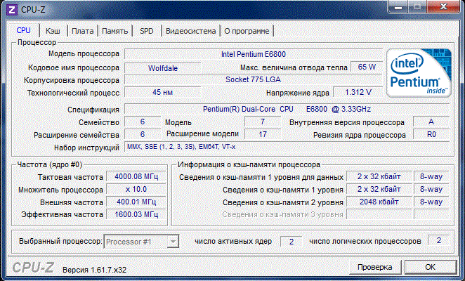 Результат разгона Intel Pentium Dual-Core (Wolfdale-2M)
