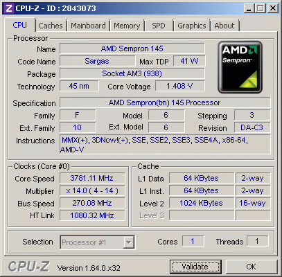 | Процессор (ядро) | AMD Sempron (Sargas) |