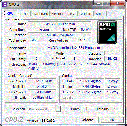 | Процессор (ядро) | AMD Athlon II X4 (Propus) |