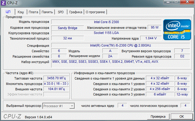 | Процессор (ядро) | Intel Core i3/i5/i7 (Sandy Bridge; LGA1155) |