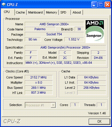 Результат разгона AMD Sempron (Palermo)
