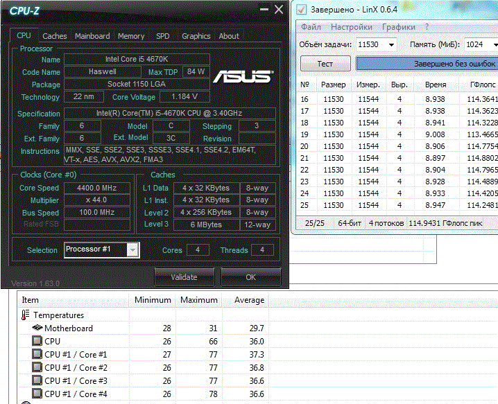 Результат разгона Intel Core i3/i5/i7 (Haswell; LGA1150)