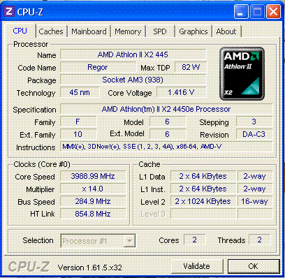 Результат разгона AMD Sempron (Sargas)