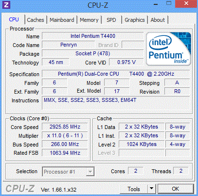 Память работает на 1066 MHz , что для T4400 невозможно т.к. он держит всего 800MHz. Cбоев в работе нет, прирост превосходит все ожидания.