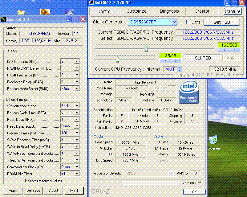 | Разгон, максимально стабильная частота (FSB x Ratio) | 3240 (180 x 18.0) |