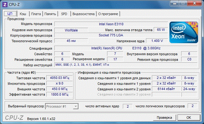 | Разгон, максимально стабильная частота (FSB x Ratio) | 4050 (450 x 9.0) |