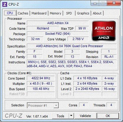 Результат разгона AMD Athlon II X4 7** (Trinity)