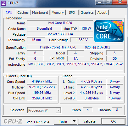 Результат разгона Intel Core i7 (Bloomfield)
