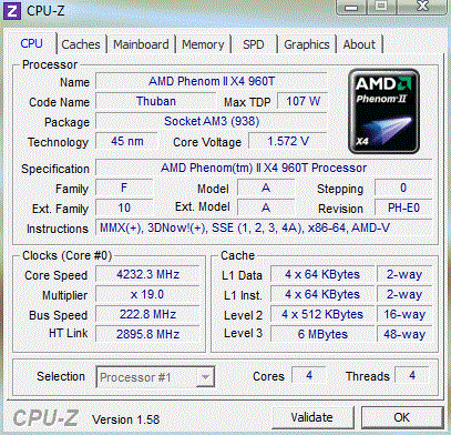 | Процессор (ядро) | AMD Phenom II X4 (Deneb) |