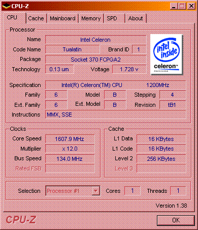 Результат разгона Intel Celeron (Tualatin)