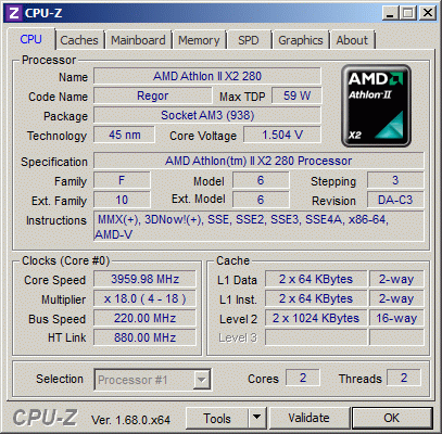 Результат разгона AMD Athlon II X2 (Regor)