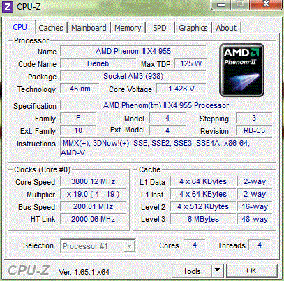 | Процессор (ядро) | AMD Phenom II X4 (Deneb) |