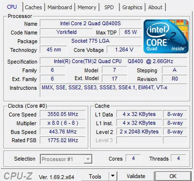 Q8400S. Макс. что выжал из мамки - fsb488 с подъемом напряжений "по кругу". Остановился на комфортной 444 шине с небольшим подъемом напряжения на проц, остальное авто. Стабильно 24x7