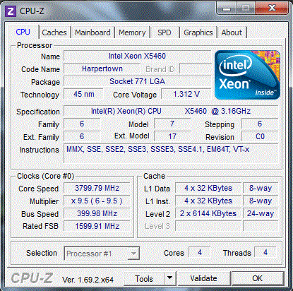 | Разгон, максимально стабильная частота (FSB x Ratio) | 3800 (400 x 9.5) |