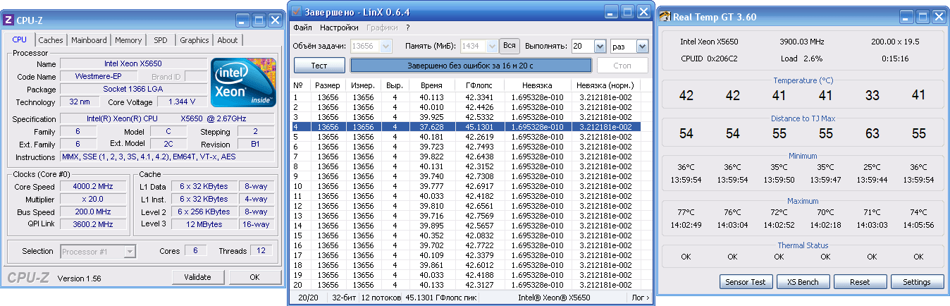 Вот, добрался и до 6 ядер! =) До него стоял на этой же матери целых 4 года i7 920, с примерно таким же разгоном(грелся до 85-87), разница в неоптимизированных приложениях минимальна(да собственно никакой), в оптимизированнх примерно синхронно в 1,5 раза(собственно +2 ядра к 4)! Результат разгона скажем так - средненький, но главное, что система достаточно холодная и стабильная!!! =)
