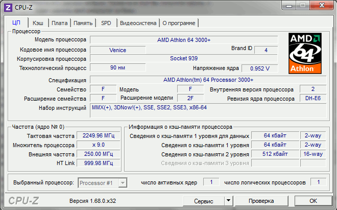 | Процессор (ядро) | AMD Athlon 64 (Venice) |
