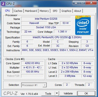 Результат разгона Intel Pentium G3258 (Haswell)