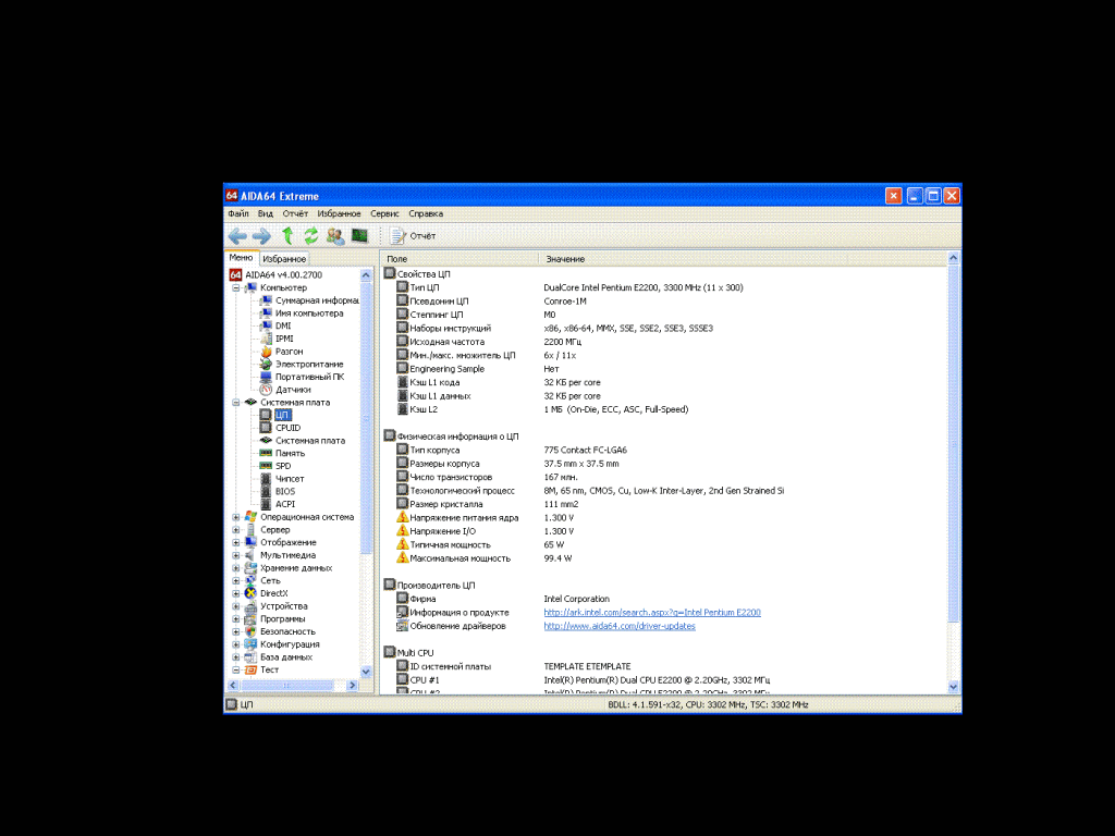 | Процессор (ядро) | Intel Pentium Dual-Core (Conroe-1M) |