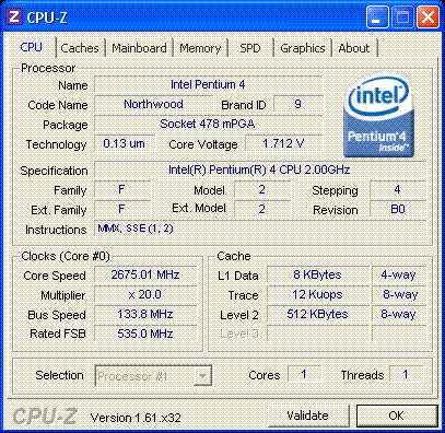 | Процессор (ядро) | Intel Pentium 4 (Northwood) |