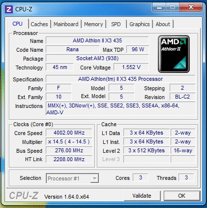 Результат разгона AMD Athlon II X3 (Rana)