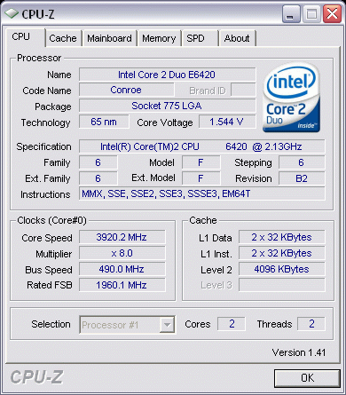 Результат разгона Intel Core 2 Duo (Conroe)