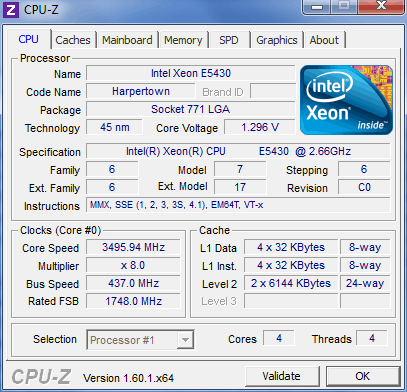 | Модель процессора | E5430 C0 |