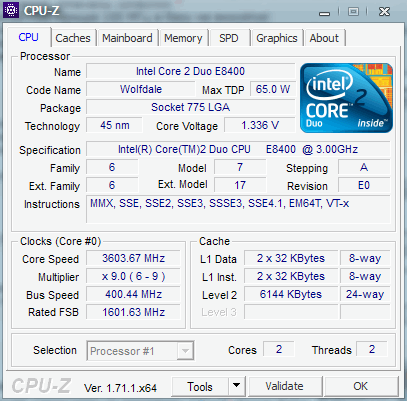 Результат разгона Intel Core 2 Duo (Wolfdale)