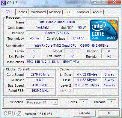| Модель процессора | Q9400 |